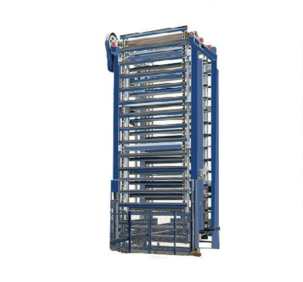 全自動托板提升裝置,采用高扭矩,高效率制動電機減速機的同步結(jié)構(gòu),堅固性鋼結(jié)構(gòu),提升用重型鏈,電機驅(qū)動,控制和監(jiān)測由位置開關(guān)和光控限位開關(guān)完成。